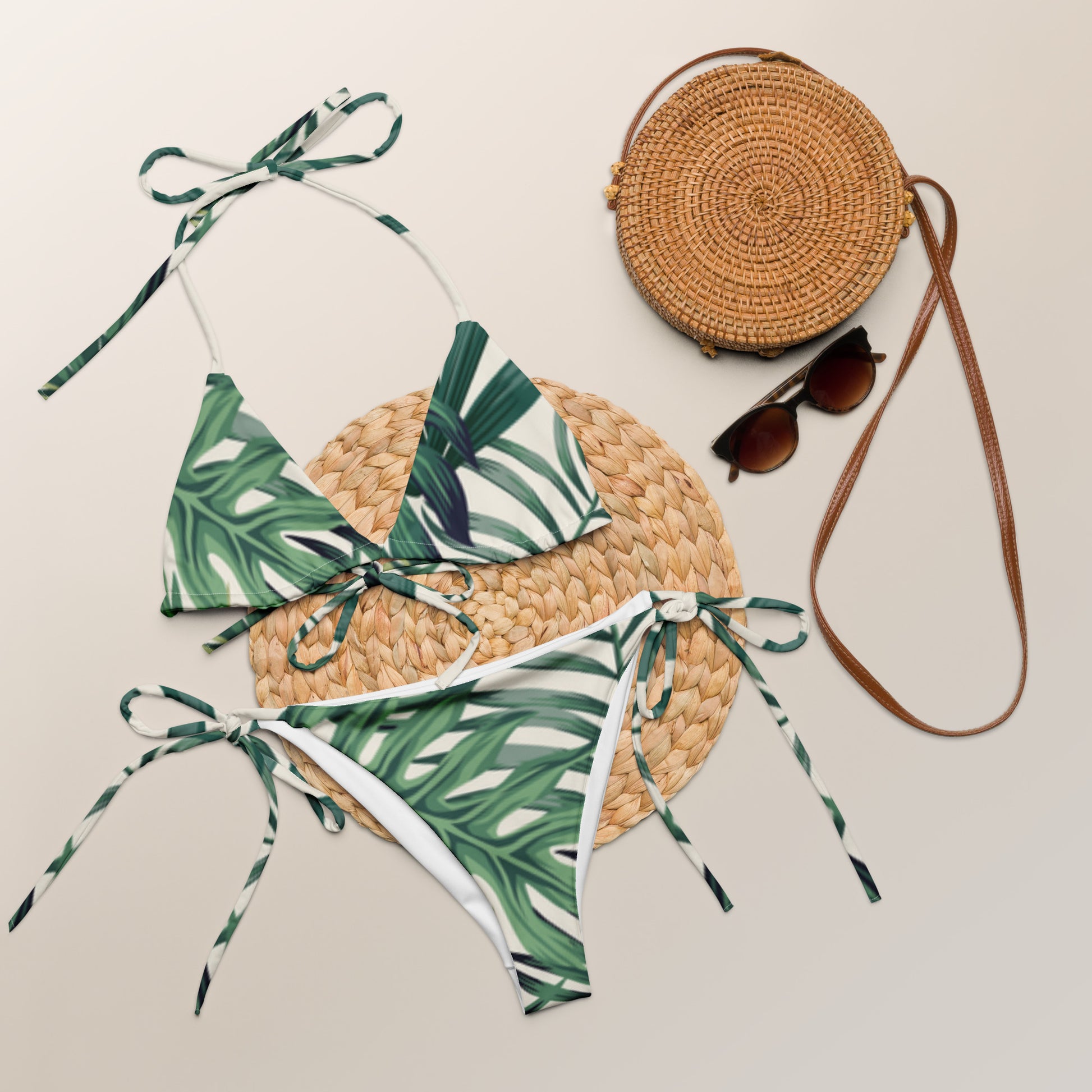 Disclaimer: Damit dein recycelter Schnürbikini mit Allover-Druck länger hält, solltest du ihn nach jedem Gebrauch gründlich ausspülen und von Chlor-/Salzrückständen befreien.