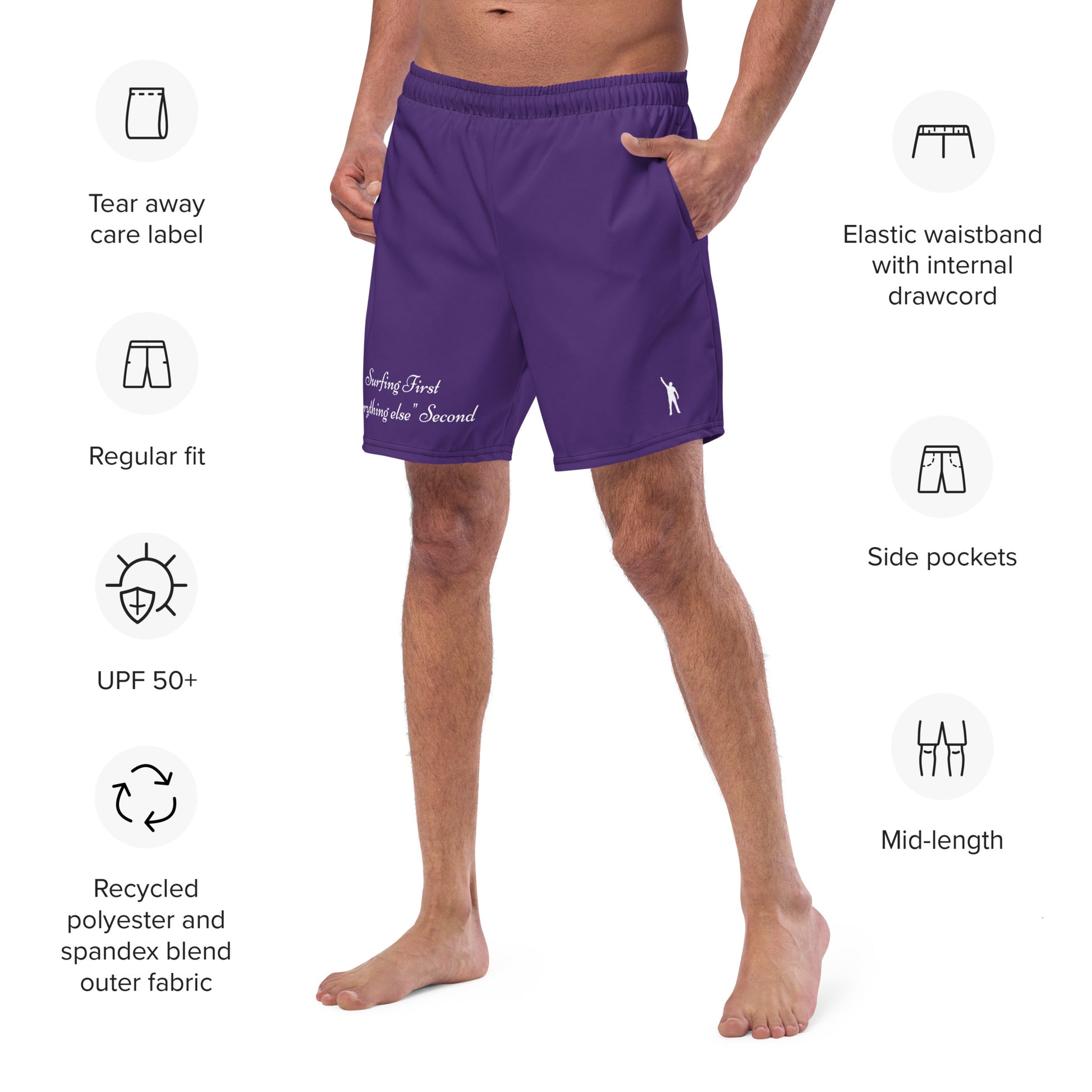 "Surfing First" - Violette Herrn Badehose für Surfer